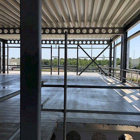 The warehouse is divided into three bays, each dedicated to specific stages of the formwork process: cleaning, refurbishing, and preparation. To enhance efficiency and minimise heat loss, each bay is fitted with high-speed automatic roller shutter doors. These doors ensure a controlled working environment and reduce noise disturbance for neighbouring buildings. The warehouse design prioritises functionality, enabling smooth and systematic operations throughout the formwork lifecycle.