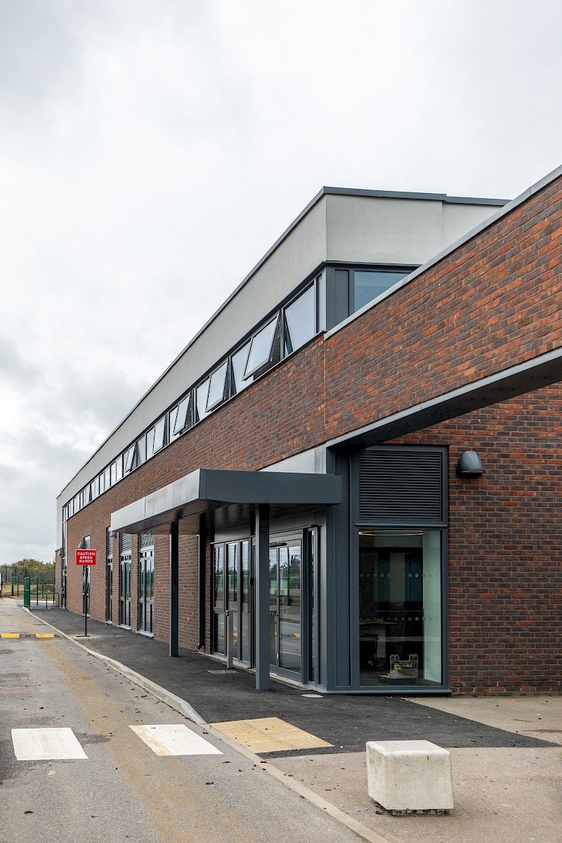 The scheme involved the refurbishment and remodelling of an existing workshop block to create a modern, fully accessible SEN facility for up to 60 pupils with a completely new first floor. The new facility is designed to integrate SEN students with Autism Spectrum Disorder (ASD) into the wider school community with a double-height space dining and breakout space, while also providing tailored spaces for additional support, including classrooms, therapy and sensory rooms, dining and breakout spaces, and improved accessibility across two floors. Externally, the scheme introduces a new drop-off zone, enhanced parking, and landscaped outdoor learning areas to support wellbeing and biodiversity.