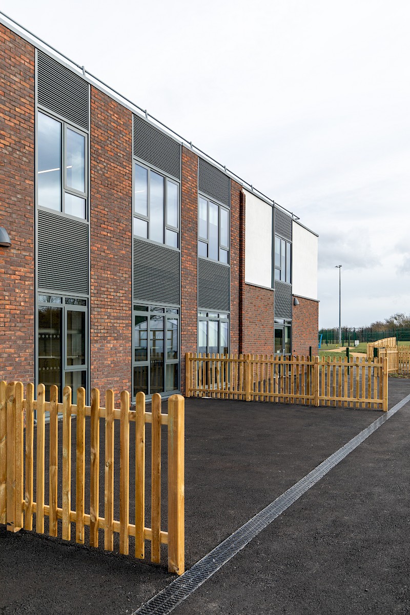 New reception and visitor facilities, two classrooms, breakout and dining spaces, pastoral and sensory rooms, staff and meeting rooms, and direct classroom access to outdoor areas.